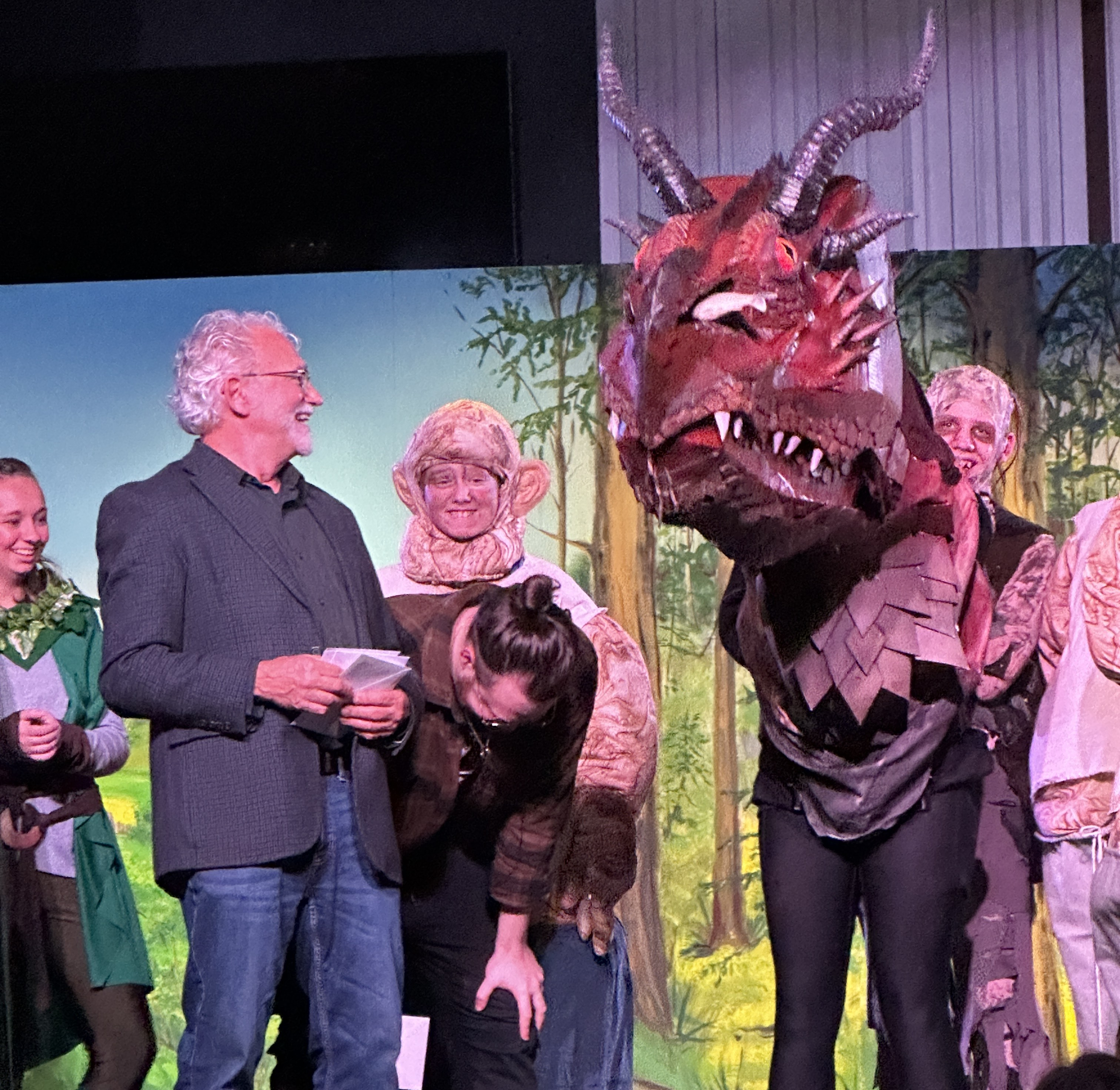 Emilie’s instinct to create something out of nothing showed up in a big way during MCA's 2025 play, The Hobbit, when she found herself saying yes to a challenge that felt just big enough. “I went to see Wayne [MCA’s theater director],” she began, “and I knew they had The Hobbit coming up. [...] So I decided to see if he needed any help with it and he was like, ‘Yeah! We have this dragon from this other play, but it would be really great if you could make us a new one if you have the time.’ And I was like, ‘Yeah, let’s go for it!’”